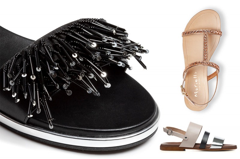 Perché i sandali bassi sono calzature da abbinare con tutto. Abiti corti, pantaloni di seta e gonne larghe.