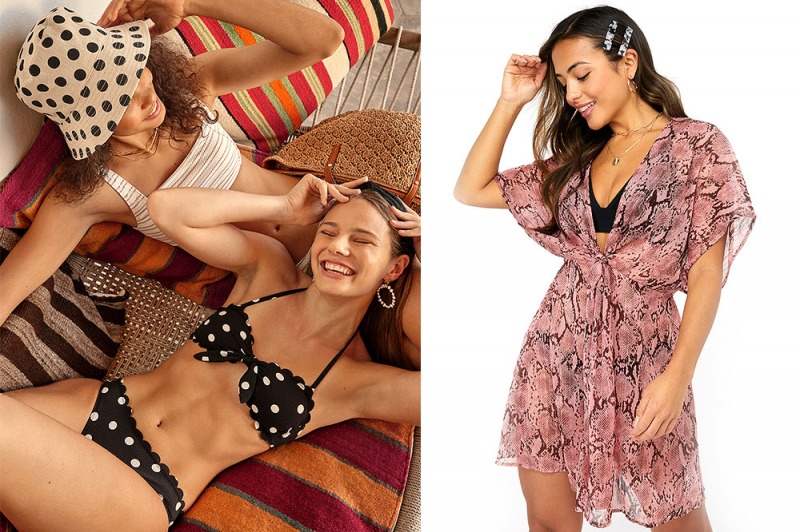 Costumi da bagno luminosi, fantastici kaftani e accessori per le vacanze.