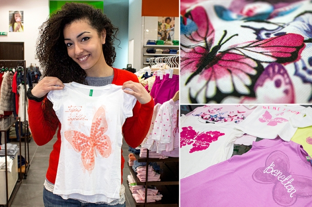 Farfalle su magliette e pantaloni. Sempre più primavera tra i capi della nuova collezione Benetton. Insieme a fiori e colori pastello i capi per bambina continuano a ricordare la bella stagione. Con ali e farfalle. Ali che regalano libertà e ricordano anche le magiche fatine delle favole. Non a caso nel catalogo, in questo momento disponibile nel punto vendita del Parco Corolla, c’è ritratta una bambina su uno sgabello e con un paio di ali bianche sulle spalle. Per fantasticare tra le magiche atmosfere di Roma, dove le foto sono state scattate. Abiti che potrebbero essere anche un ottimo regalo da acquistare in occasione della Pasqua.