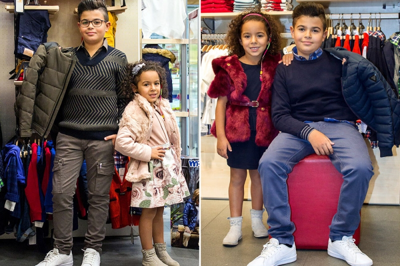 Alcuni esempi? Guardate Filippo nella foto con maglione, camicia e pantalone con tasconi laterali. Tutto abbinato nelle varie tonalità del marrone. Capi realizzati con tessuti naturali, comodi e alla moda che fanno parte della collezione autunno inverno Antony Morato. Accanto a lui Ginevra con un abito rosa a fiori Y-Clù e giubbino Mayoral.
