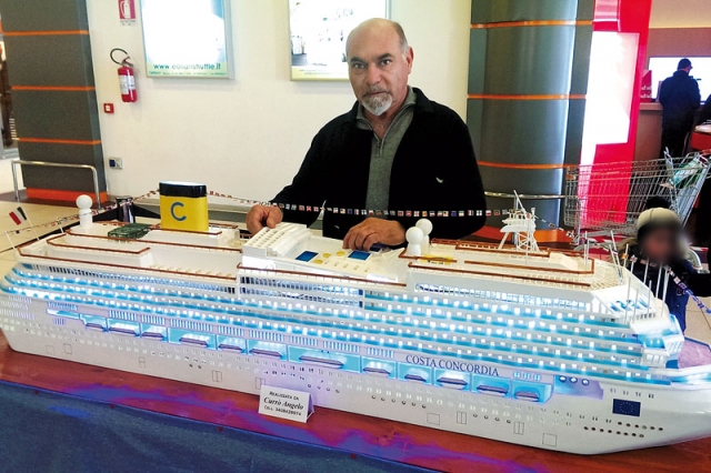 Tanti i curiosi che si sono soffermati stupiti della cura con cui è stato realizzato la nave. Il signor Currò, nato a Milazzo ma residente a Pace del Mela, oggi pensionato, è un appassionato di crociere. Ne ha fatte ben diciotto. «Avevo acquistato il biglietto per fare un viaggio sulla Concordia qualche settimana prima dell’incidente e questa coincidenza mi ha ispirato ancora di più», rivela. La passione per il modellismo è nata tre anni fa. Durante la tappa di una crociera in Croazia ha acquistato il modellino di un veliero. Per gioco lo trasformò (oggi fanno bella vista ben cinque alberi al posto degli originali tre), così è nata la passione. Fino ad oggi - assicura Currò - ha realizzato due velieri di un metro e mezzo di lunghezza per un metro di altezza e una feluca. Poi ha deciso di confrontarsi con una nave da crociera e ha scelto la Concordia. «Ho lavorato cinque ore al giorno per tre mesi e mezzo. L’ho ultimata il 31 dicembre scorso. Esattamente lo stesso giorno del 2011, pochi giorni prima del naufragio, avevo acquistato il biglietto».