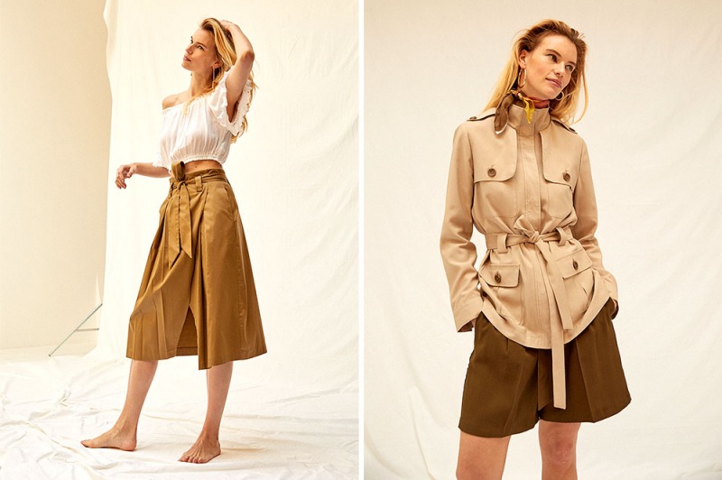 Abiti monocromo tinta sabbia, camicie bianche e gonne lunghe, giacche con tasche e cintura in tutte le sfumature del deserto.