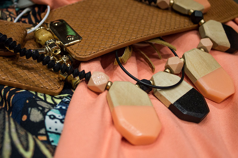 Cinture bracciali e collane in legno impreziosite da corde e pietre. Per la collezione estate 2015 Oltre propone accessori dal sapore decisamente etnico che si ispirano a mondi afro.