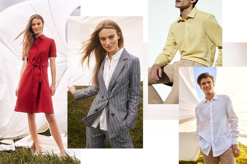 Anche quando è mattino presto e le temperature sono già alte. Il puro lino si accompagna ai modelli in pregiato blend lino – corone, la fusione perfetta tra la leggerezza strutturata dell’uno: la soffice resistenza dell’altro.