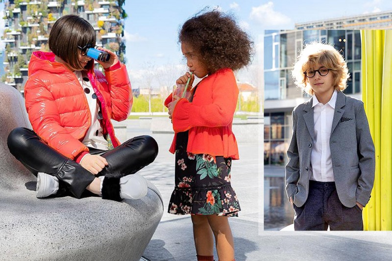 Le bimbe più grandi vivono invece le occasioni chic con un outfit disinvolto e innovativo, dove i protagonisti sono colore e dettagli. Il nero dei pantaloni in ecopelle con volant è abbinato al top bianco in punto milano con maxi paillettes nere, mentre l’abito nero in crepe con fantasia floreale di tonalità vitaminiche è perfetto da indossare ai party tra amiche per essere la più chic. Must-have è il tricot arancio con volant, che dona un tocco romantico al look chic.