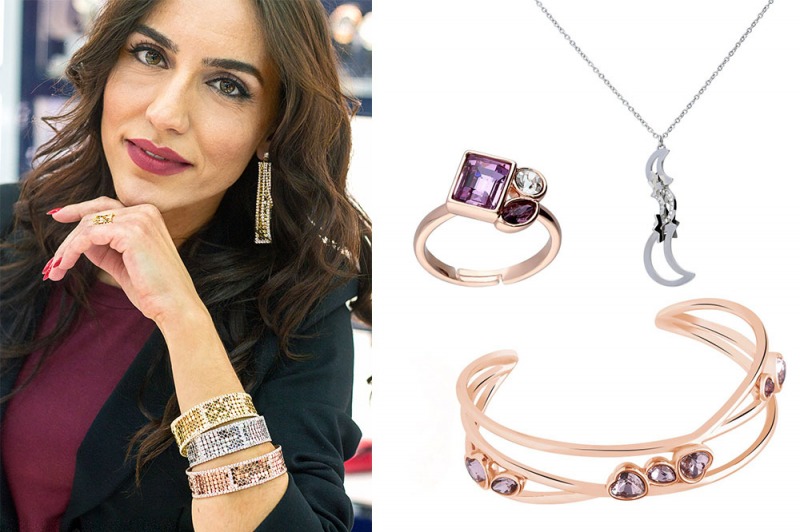 Oppure la collezione “Violet”: collane, orecchini, bracciali e anelli in metallo rosato e pietre colorate, per un delicato tributo a luce, bellezza e armonia.