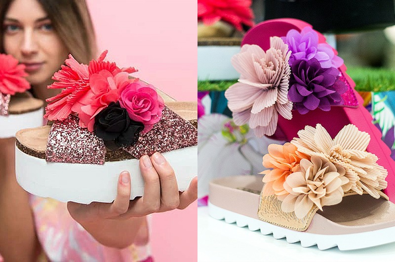 Con l’aiuto del personale qualificato presente in negozio, è possibile scegliere tra quelli in glitter con fiori multicolor applicati. Sottopiede anatomico in pelle, suola platform super leggera e tomaia incrociata.