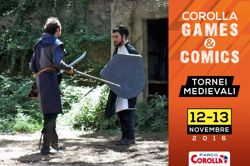 “Incrociate le lame, impugnate gli scudi, armatevi di coraggio e scendete nell’arena. Nobili cavalieri o fiere amazzoni è giunta l’ora di dimostrare il vostro valore. Affrontate gli avversari in uno scontro faccia a faccia; Il Corolla Games & Comics vi dà la possibilità di fare un viaggio nel tempo e calarvi nei panni di storici eroi. Che la battaglia abbia inizio! Chi vincerà la sfida?”
