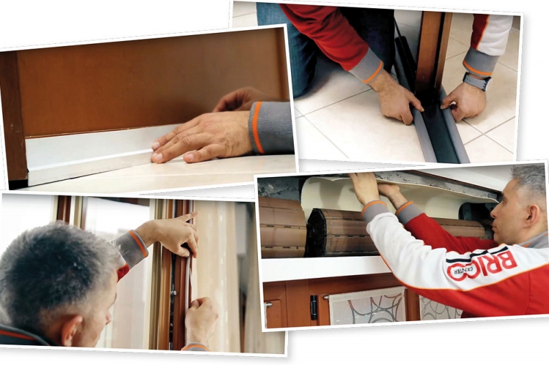Dopo aver pulito con l'alcool gli stipiti bisogna applicare strisce isolanti in modo da non permettere all'aria fredda di entrare in casa.