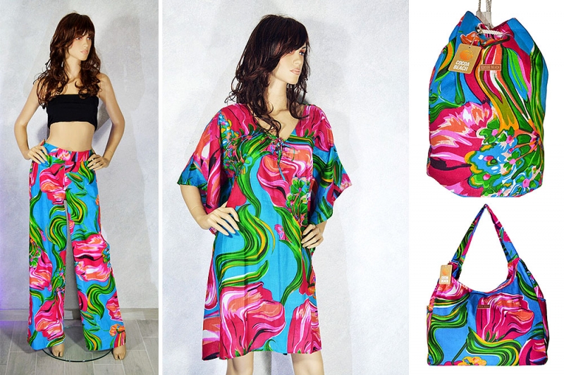 Il kaftano Shakly in cotone 100%, ideale da infilare in valigia, è disponibile nel punto vendita Clichè del Parco Corolla, in tantissime fantasie e colori estivi.