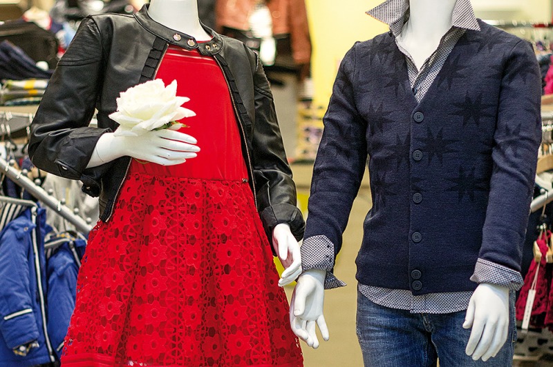 Nelle foto alcune proposte: per la femminuccia giubbino in ecopelle e vestito rosso (Guess)
