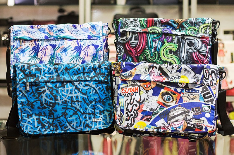 Da C'Art, al Parco Corolla, sono arrivate le nuove borse a tracolla messenger di Comix: estensibili, realizzate in resistente poliestere, patta con chiusura a ganci, tasca con zip nella patta, tasca con chiusura a strappo nella parte posteriore, cerniera laterale che aperta aumenta la capienza della borsa, tracolla regolabile e sganciabile.