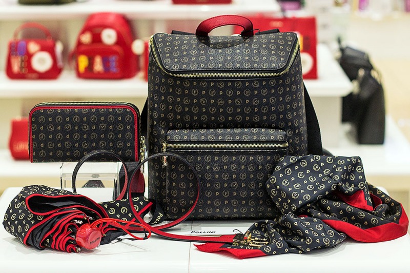 La linea di pelletteria ed accessori Heritage, caratterizzata dalla stampa all-over del monogramma, ad esempio, rappresenta la linea iconica del brand Pollini che ne ha sancito il successo ed il prestigio Internazionale.