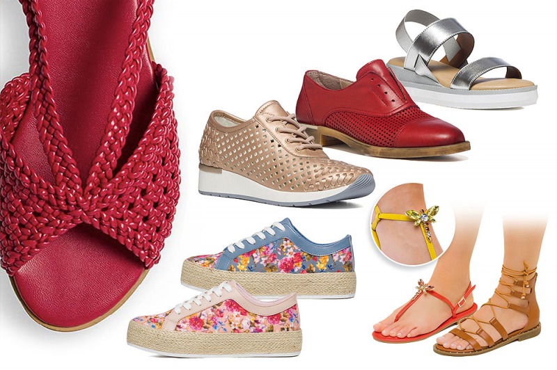 Pattern floreali e righe multicolor vestono sneakers e ballerine di primavera.