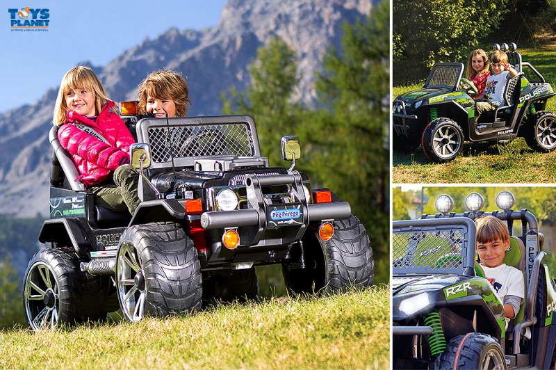 I modelli di piccoli fuoristrada giocattolo a due posti, sicuri e perfetti in ogni dettaglio, sono di Peg Perego, leader indiscusso.