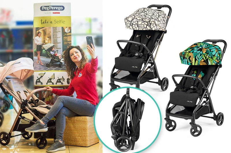 Schienale reclinabile con una mano. Comfort assicurato sia nella posizione seduta (circa 97°) che nella posizione nanna (circa 170°).