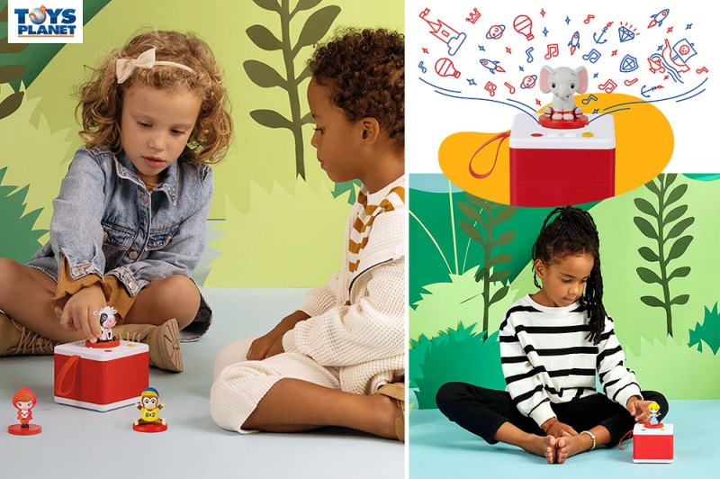 Lo Starter Set contiene: la cassa audio Bluetooth con volume limitato a 85dB, il personaggio sonoro Ele, l'elefante con le canzoncine preferite dai bambini, e il cavo Usb per collegare la cassa al PC e per ricaricarlo.