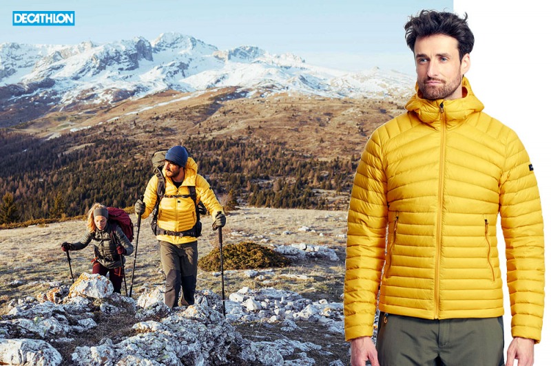 Il piumino MT100 Forclaz di Decathlon tiene al caldo durante il trekking