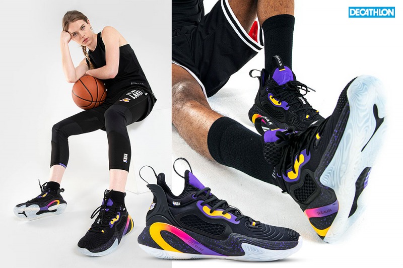 Grazie ad una partnership con Nba l’equipe di Tarmak ha sviluppato le scarpe unisex SE 900 Los Angeles Lakers per i giocatori intensivi che cercano slancio e dinamismo. I modelli di Decathlon