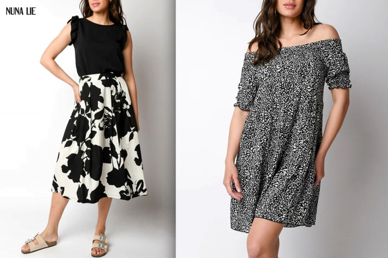 Completi dalle stampe floreali sia black and white che fantasie microfiore, contraddistinguono ogni primavera Nuna Lie