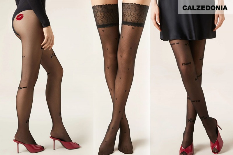 I collant con micro cuori, delicati e discreti, sono perfetti per chi ama un romanticismo sussurrato, mentre le versioni con cuori più decisi e a contrasto parlano a chi non ha paura di osare e di farsi notare. La palette resta fedele all’immaginario di San Valentino — nero, rosso, trasparenze velate — ma l’approccio è moderno, mai scontato.