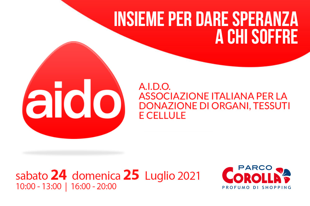 L'AIDO Gruppo Comunale di Milazzo 'Alba Munafò', sabato 24 e domenica 25 Luglio 2021 - dalle 10:00 alle 13:00 e dalle 16:00 alle 20:00 - instituirà al Parco Corolla un punto informativo (nel rispetto delle norme anti-covid, distanziamento e mascherine) in cui gli operatori AIDO svolgeranno attività di informazione con brochures informative e schede di dichiarazione di volontà in ordine alla donazione, al fine di promuovere la cultura della donazione di organi, tessuti e cellule, e provvedere alla raccolta di dichiarazioni di volontà favorevoli alla donazione post mortem.