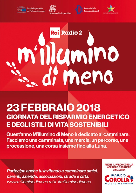 Venerdì 23 Febbraio è la GIORNATA DEL RISPARMIO ENERGETICO Aderisci anche tu all'iniziativa "M'illumino di meno" spegnendo per tutto il giorno il maggior numero di dispositivi elettrici non indispensabili. Anche il Parco Corolla sostiene e aderisce a questa importante iniziativa spegnendo per tutta la giornata luci e dispositivi non indispensabili in tutta la sua struttura.   Lanciata nel 2005 dalla trasmissione radiofonica Caterpillar di Rai Radio 2, l'iniziativa diventata una giornata riconosciuta e patrocinata dal Parlamento Europeo, dalla Presidenza del Consiglio dei Ministri e dal Ministro dell'ambiente. M’illumino di Meno è anche la festa degli stili di vita sostenibili, quelli che fanno stare bene senza consumare il pianeta, un’iniziativa simbolica e concreta.